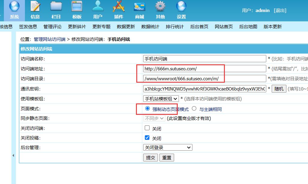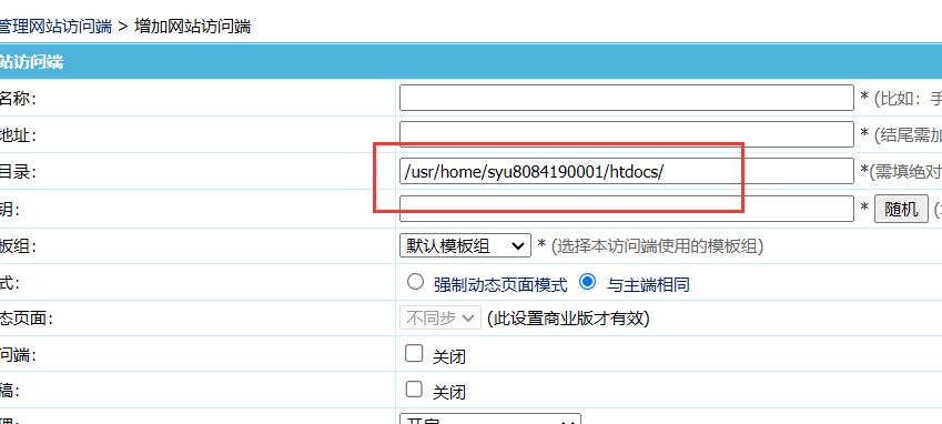 修改手机访问端地址和访问端路径。访问端地址就是你自己的手机端域名;