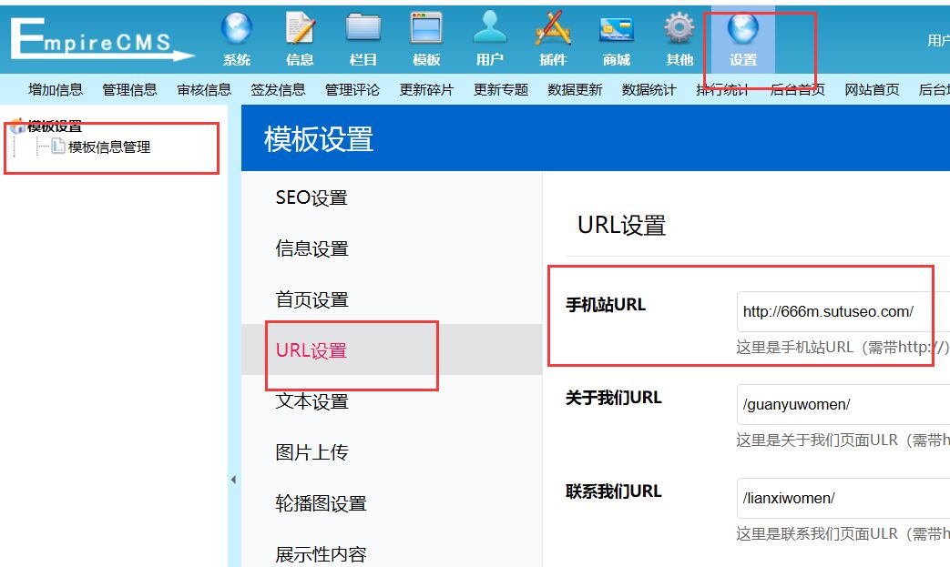 点击设置—链接设置,填写自己的手机站URL