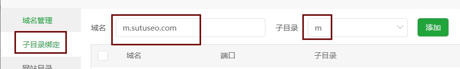 域名绑定到二级目录文件夹;(这一步必须要求你用的主机支持绑定子目录。如果不支持,请参照方法处理:虚拟主机怎么手机站m域名绑定二级子目录)