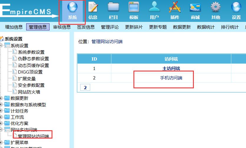 点击后台—系统—-管理网站访问端;