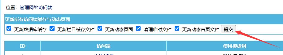 修改好之后,点击更新所有访问端缓存与动态页面;