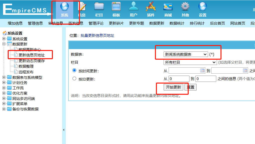 第二步:更新生成网站页面;后台—数据更新—按照下面依次更新。
