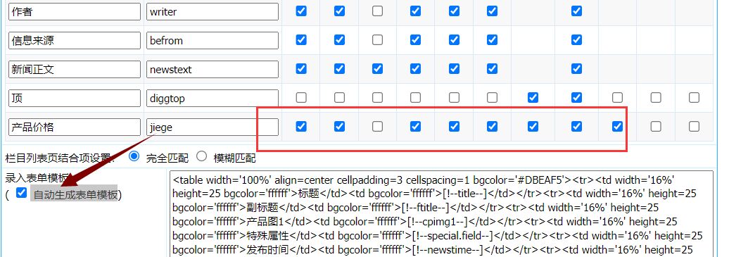 第三步:点击“管理系统模型”—将添加的自定义字段勾选应用的选项。(在勾选前,一定要先勾选“自动生成表单模板”)