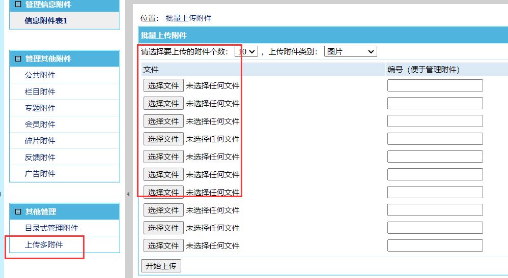 点击“上传多附件”,就可以一次多上传图片了;