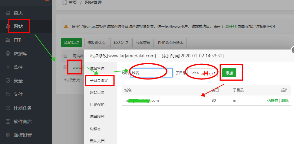 第三步:由于设置了二级域名来访问手机端,我们需要将二级域名解析到二级目录上。